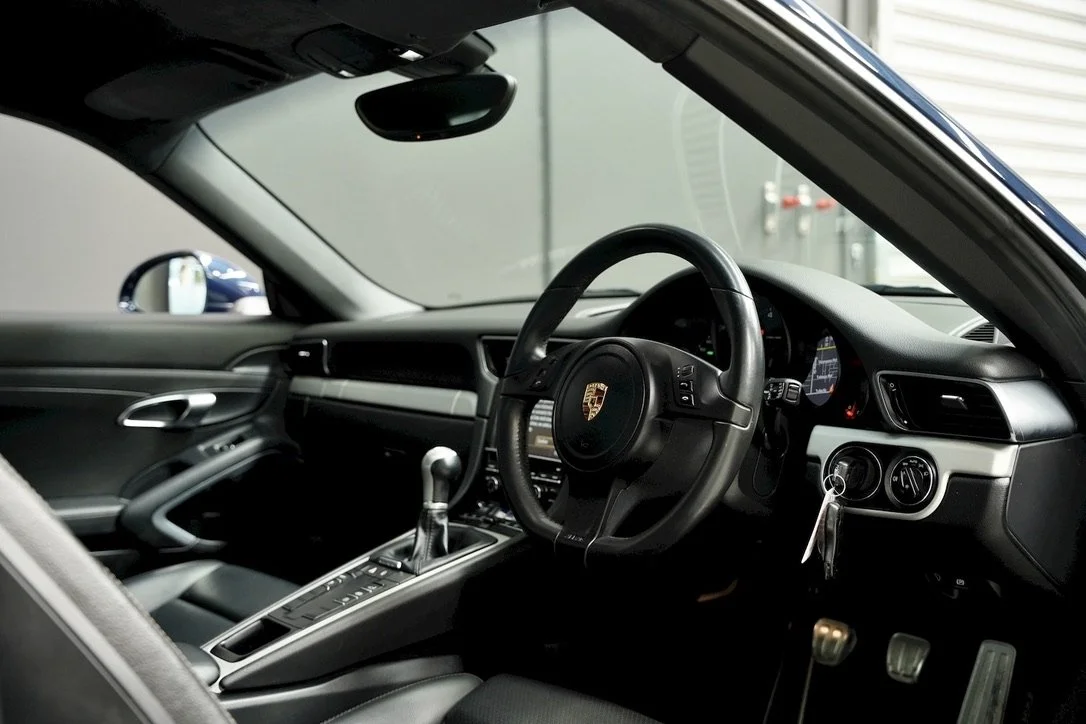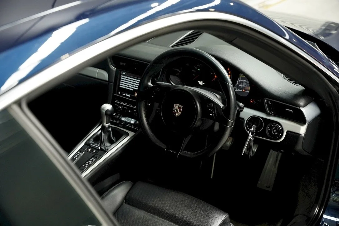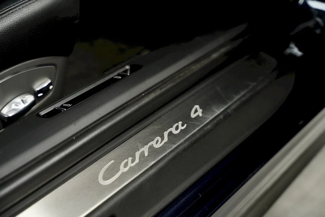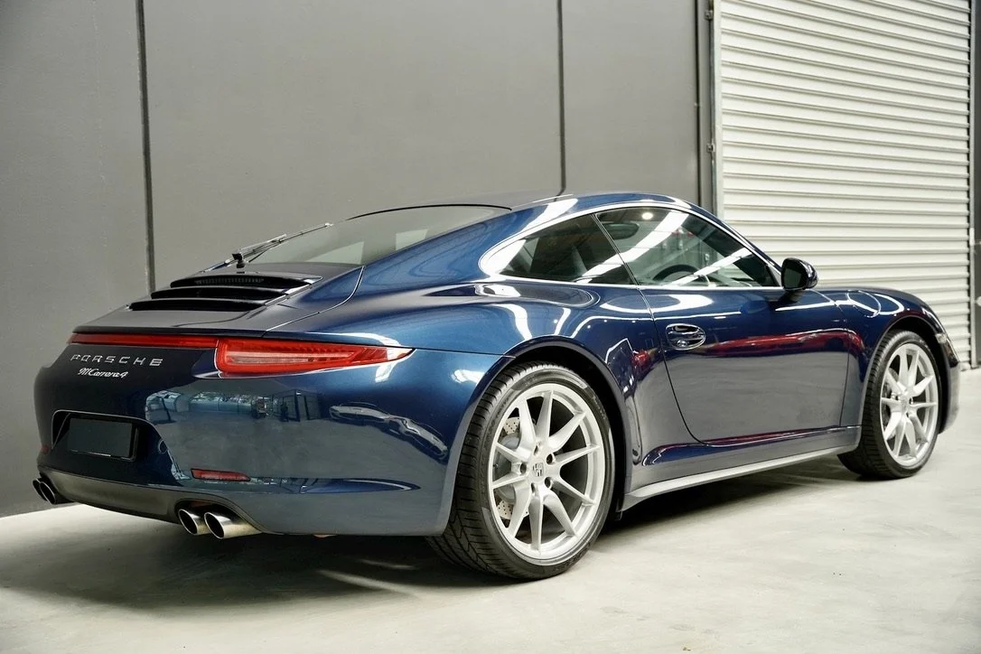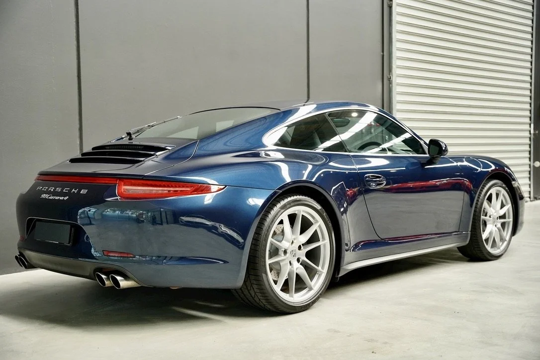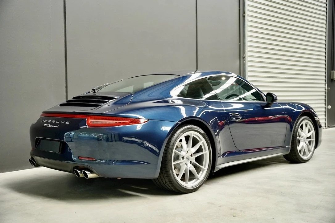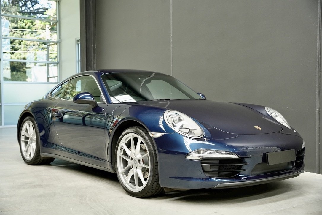 As new, two owners, wide-bodied, 2012 built 2013 complied 991 Carrera 4 manual Coupe finished in Dark Blue Metallic over Black Leather and travelled only 48,400 kilometres.